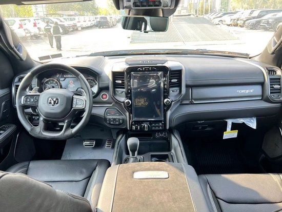 22款道奇霸王龙内饰部分进一步强化了其高性能版本的形象,中控台和座椅随处可见的TRX标识便是最好的例证。同时,作为道奇家族的旗舰车型,新车还配备了12英寸竖置中控屏幕,除了支持蓝牙、导航和车载Wi-Fi等常见功能,还支持AppleCarPlay和Android Auto手机映射。