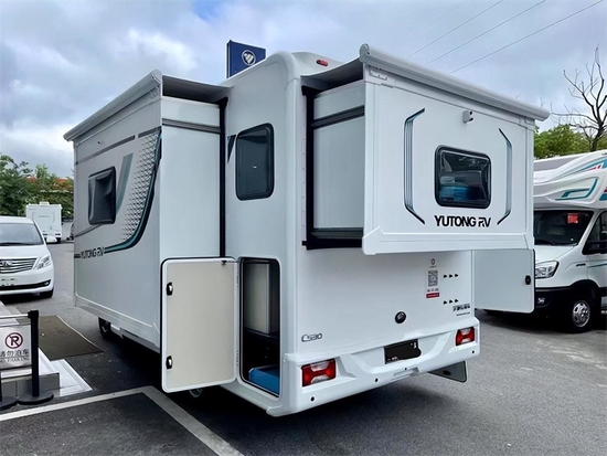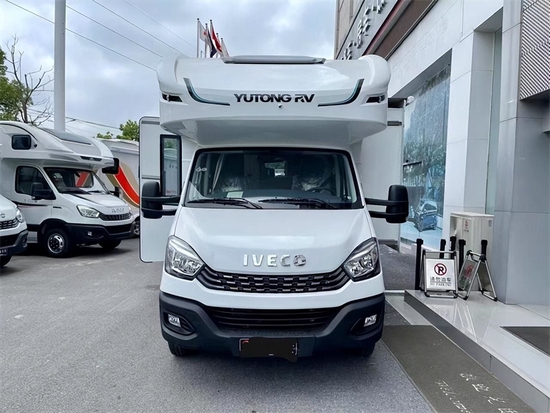 宇通C530双拓展房车采用依维柯3.0T柴油发动机,180--1769--1185。采埃孚8AT自动挡变速箱,最大扭矩400牛米,国六排放标准,荷载6人,蓝牌C照即可驾乘。底盘不多说,相信很多车友都了解依维柯的性能,动力强、高承载,新疆、西藏等边远地区也能攀登。