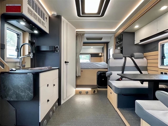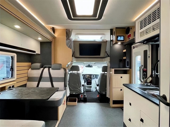内部配置也是面面具到,休息区、会客区、厨房区、洗浴区等均有配备,满足日常生活毫无问题!会客区采用对卡座设计,日常会客、拼床都能满足。值得一提的是宇通房车的所有座椅均采用乘用车级安全要求,增加出行时的安全系数,这也是宇通房车的细节所在。