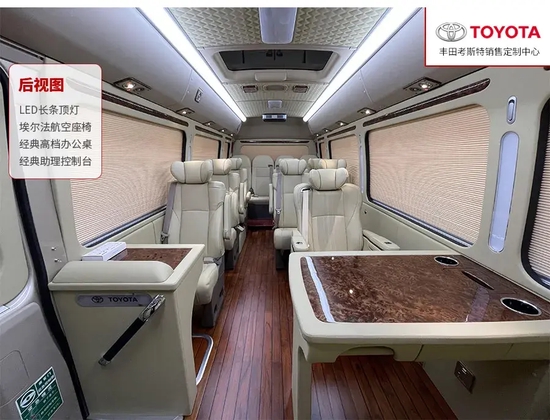 丰田考斯特改装的真皮航空座椅,可360度旋转以及电动调节,可以让乘客自行调节舒适的空间距离以及靠背、脚托的角度,宽敞的空间让双腿收放自如;专业的座椅构造增加腰部的支撑,让乘坐者彻底忘却旅途的疲劳,丰田考斯特在商务车市场中独占鳌头,历经数载精锐研发,以优越的性能服务着广大客户,在丰田考斯特的全系产品中,每一款车都可以根据客户的想法进行改装,真正做到私人定制。