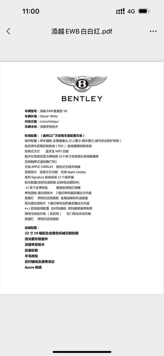 23款宾利添越雅度加长版的轴距及座舱后排加长180毫米。另外,该车除了延续此前慕尚车型豪华后舱乘坐体验外,其还传承宾利汽车精髓,兼具驾控体验、精湛手工技艺和高度个性化定制服务。