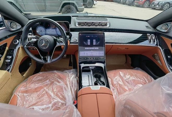 2022款奔驰迈巴赫s580内饰大面积采用Nappa真皮包裹+实木装饰,典雅又不失时尚感,配备12.3英寸液晶仪表盘和12.8英寸中控屏,支持多屏互联功能,用户可以通过拖拽到屏幕显示的相应座位处,对导航、视频或是音频等内容进行隔空分享。配备后排双独立行政座椅,配备独立腿托,保障了豪华舒适的乘坐体验。