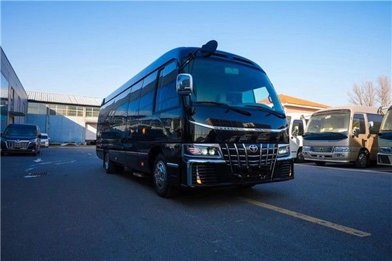 新款豪华版COASTER考斯特,外观经典,大气。丰田考斯特改装商务车车身长度为7.005米,身宽度为2.040米,车身高度为2.774米。华通丰业丰田考斯特新增了隔热隐私玻璃,各种镀铬装饰以及镀金标识,庄重感与豪华感油然而生。采用简约设计风格的电视屏风将驾驶席与乘客区隔屏。配以乘客区公务机舱设计,使您在打开车门一瞬间即享尊荣之感。