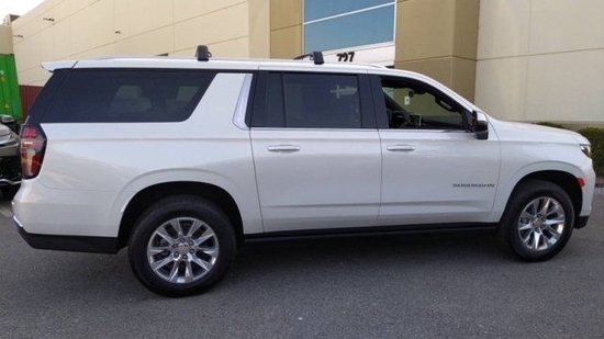 2022款雪佛兰萨博班外观造型设计还是以方正风格为主,车头横纹镀铬进气格栅气场不输凯迪拉克凯雷德 ,两侧更狭长的LED矩阵大灯光源很犀利,搭配小獠牙日行灯装饰,车头侵略感比较强。车身侧面属于很明显的全尺寸SUV身材,新一代产品比老款车型轴距增加了105mm,C柱后方超大面积侧窗与凯雷德如出一辙,搭配隔音隐私玻璃和平坦的车顶行李架,沉稳的气场很突出。
