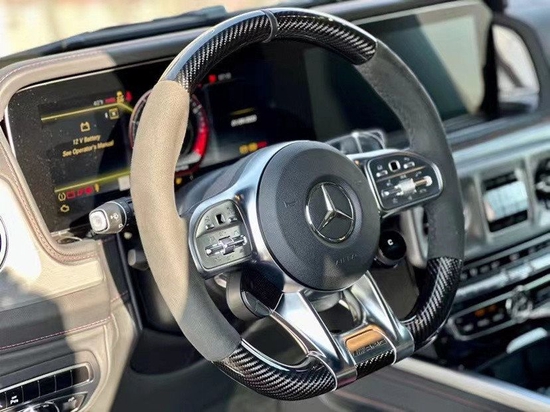 23款奔驰G63档次、质感和科技配置都明显提升奔驰G级 (配置|询价)(配置|询价)(配置|询价)的内饰相比老款有了明显的提升,更多咨询请致电18649181881石女士同微信,采用了奔驰最新的双屏幕式设计,全液晶仪表盘和中控台屏幕都达到12.3英寸,同时内饰质感和工艺都有了很大的进步。中控涡扇式空调出风口也颇具设计感,车内的高档皮革内饰以及标有V12钻石图案设计的座椅、车门面板和脚垫,无不彰显着车主的尊贵身份。