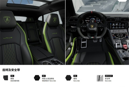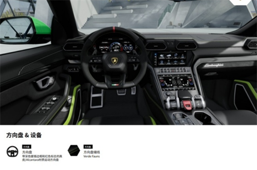 URUS的内饰采用了全液晶仪表+中控屏+空调座椅控制屏的设计,与奥迪的虚拟座舱有点异曲同工的设计。不过在风格上则是满满的兰博基尼元素,它的内饰采用了大面积的材质包覆,辅以碳纤维的装饰,无论是视觉上还是触感都很高级,在豪华的同时能感受到运动,在运动的同时还能感受到科技,这就是兰博基尼URUS能带给你的多重感受。