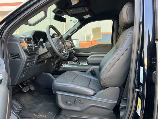 \福特F150Tremor越野版内饰是黑色的,车内独特Tremor内饰(真皮方向盘,座椅,内饰,地垫和Logo)。车内的座椅是船用级乙烯基座椅。前排电动座椅8向调节和腰部支撑,前排座椅加热带扶手箱购车热线:18812637416刘经理 (同号微信)