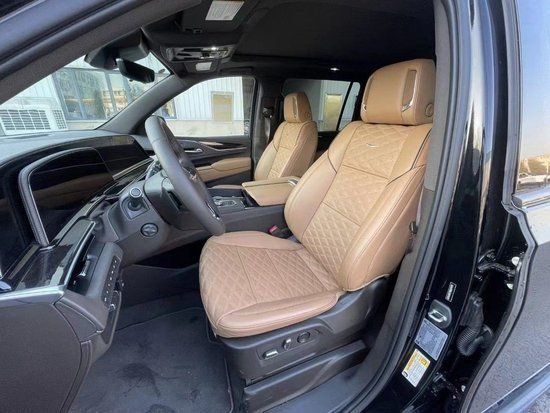 新款凯雷德的内部布局经过精心打造注重细节,以奢华面料、一系列的高科技创新奠定了基调。内饰的豪华程度可以与豪华轿车相媲美,最顶级的材质提供细腻触觉和精致观感。真皮桃木多功能方向盘可加热,三区域独立可调节空调可由三排乘客分别控制温度。仪表盘以业界首创的曲面OLED驾驶显示屏为主,它由三个弯曲的 OLED 显示屏组成,这些显示屏相互叠加,形成一个 38 英寸的酷炫组合数字空间,其中一些用作驾驶员的仪表盘,而其余的则投射 CUE 信息娱乐系统,科技感十足。