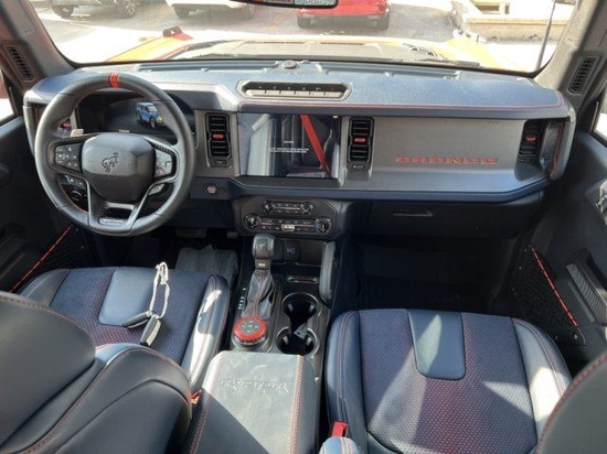 福特烈马猛禽配备了多种先进的驾驶辅助系统,包括车道偏离警告、盲点监控和自动紧急制动,它还具有后视摄像头和后方交叉路口警报,福特新的“Co-Pilot360”系统是猛禽的标准配置,包括许多高级驾驶辅助功能。内饰方面,福特Bronco猛禽版的布局设计与普通版基本一致,主要变化在于提供了拼色安全带以及专属座椅刺绣徽章等。另外,这台车除了换挡拨片和驾驶模式旋钮,还增加了一键进自定义驾驶模式功能。