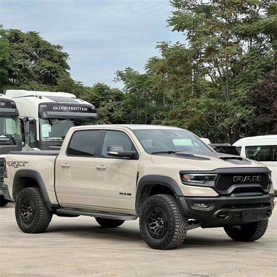 道奇霸王龙外观设计极具冲击感,前倾式车头,相较中规中矩的家族设计无疑多了几分对路面的侵袭感。车内氛围堪称豪华,绝对可以媲美高级轿车。眼神中没有透露出一丝的活泼神韵,唯一展现出来的只有凶狠。前杠是铁质前杠带拖钩,散发这金属气息,沉稳大气。