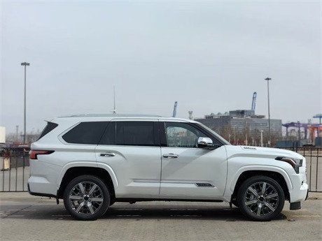 23款丰田红杉车身侧面的设计感和力量感相比老款也更加明显,车身上的腰线在前门处断开并向内凹陷,让看着庞大生硬的身躯多了几分动感,另外新车侧面采用了隐藏式的A、B、C柱设计,还营造出了悬浮式车顶的效果。比较下来,老款车侧上简单的线条勾勒就显得平平无奇了。