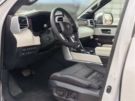 23款丰田红杉车内采用了大量软质材料包裹,部分区域还加入了缝线处理,显得档次感和质感十足。另外车内采用的是四辐式多功能方向盘,并保留了很多物理按键,足以满足驾驶时想要的操控感,车内的科技氛围是通过12.3英寸的全液晶仪表盘和14英寸的中控屏来实现的,中控屏两侧的空调出风口,虽然没有采用时下流行的贯通式设计,但在中控台上对称排列也别有一番风味。