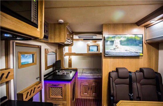 厨房区实木组合式橱柜采用分区域布局设计,由乘客门隔开,不同的功能相互呼应的同时也让做饭井然有序,橱柜推拉式抽屉便于存放日常生活用品及碗具。其它方面配备触摸式集中控制系统+机械式翘板开关、液晶电视、小米盒子、日本YAMAHA八喇叭音响系统(带低音炮)、抽油烟机、微波炉、西门子电磁炉、152L赛特福德房车专用冰箱、大宇3kg洗衣机、特鲁马燃油暖风热水一体机、四路监控、一氧化碳/烟雾报警器等。室内多个220V、12V电源插座及USB充电接口可满足日常充电需求。