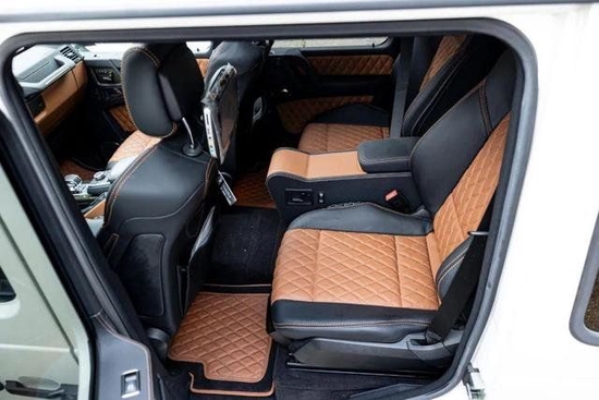 外形方面,前半部分基于AMG G63 4x4,而后部加长部分采用皮卡形式,让整体看上去更加清爽,不会有加长后累赘的感觉。后斗配有粗壮的不锈钢防滚架,至于这个皮卡的后货斗具体有什么作用,这个我们不需要懂,也根本不会懂。