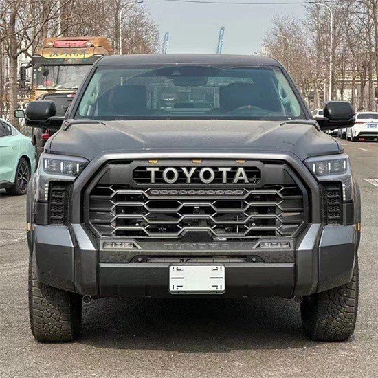 TRD PRO版本更是为我们提供了一套强悍的越野装备,在性能方面是可以完全对标福特猛禽的存在,虽然动力上不及霸王龙一样暴力,但是3吨多的车重400多匹马力也足以满足我们的各种需求。另外,大面积的黑色蜂窝状中网还植入了“TOYOTA”标识,让前脸看上去更加的霸气。至于双层开孔式的引擎盖,则提升了车辆的战斗氛围。更值得一提的是,新车搭配了由BBS代工的18英寸铝合金轮毂,匹配的则是275/65R18的米其林LTX A/T2全地形轮胎。