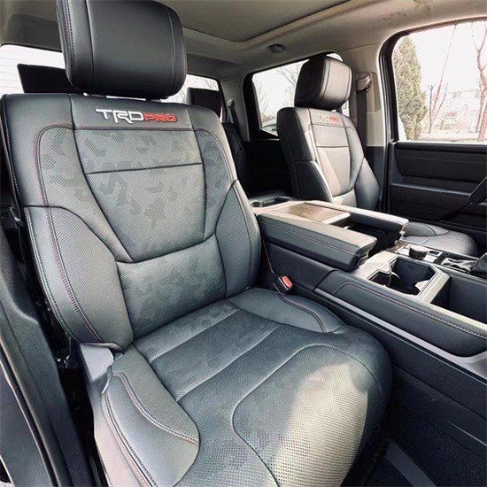作为一款高性能美式皮卡,pro版为我们提供了两款内饰颜色可以选择,不光有运动感十足的黑红双拼内饰,还有比较传统的全黑内饰,并且座椅上还带有非常时尚的迷彩花纹点缀。