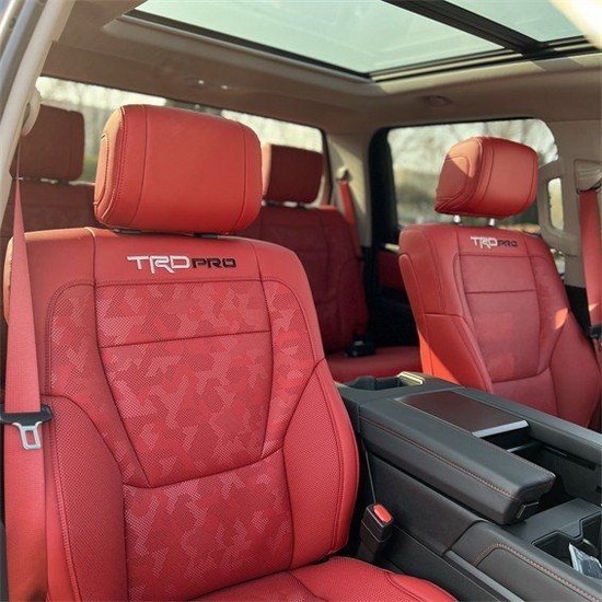 内饰方面,新车整体变化不大,而TRD Pro版采用的是全黑内饰,并且加入了红色缝线。至于座椅上,还加入了TRD Pro标识以及专属脚垫。