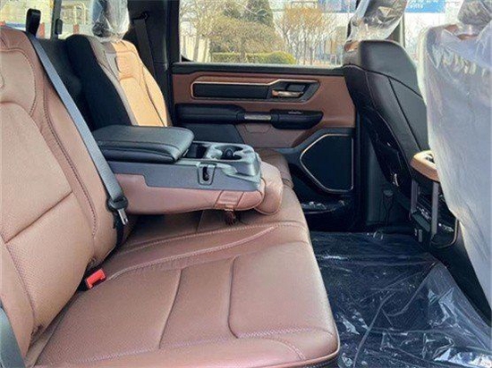 道奇公羊长角号皮卡在内部设计上还是延续了美式那种比较粗犷的风格,规整的做工用料看上去就非常有质感,丰富的配置会让你不由得为其称赞,中控台的设计简洁硬派,符合公羊的气质,仪表盘底边有花纹,则更加凸显了这款车的文雅性,软性材质的仪表台设计,摸上去手感非常舒服,并无些许生硬之处