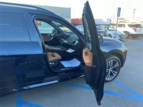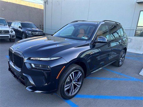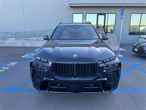 2023款宝马x7 (配置|询价)整体造型延续了此前概念车的设计。进气格栅相比宝马现款车型尺寸更大,两侧大灯也采用了开眼角设计,但造型更加狭长,搭配内部的日间行车灯,有着较强的科技感。