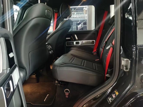 23款奔驰G500其中前排座椅肩部相比老款加宽了38mm,并且配备了座椅加热、座椅通风以及座椅按摩等功能。