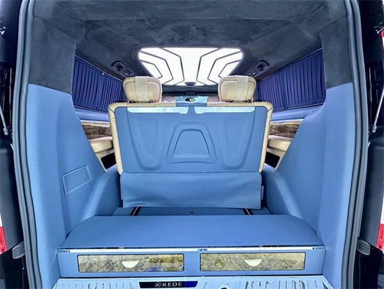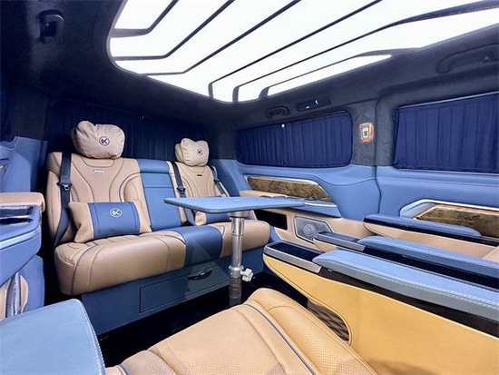克蒂帝亚M1的内饰采用手缝双线头层皮革,彰显品位与格调;定制后舱航空座椅采用全冲压结构座椅骨架,具有通风、加热、按摩、旋转、电解锁等功能。帝亚M1的座椅布局同样多种可调,普通的2+2+3七座模式可以用来长途驾驶。而在休息的时候,车辆座椅支持放倒,旋转,解锁更多车内乘坐体验。帝亚M1细节处理更加优秀,车顶可以为用户提供不同风格的选装服务,车辆在没有天窗的情况下可以选择自己喜欢的顶灯。