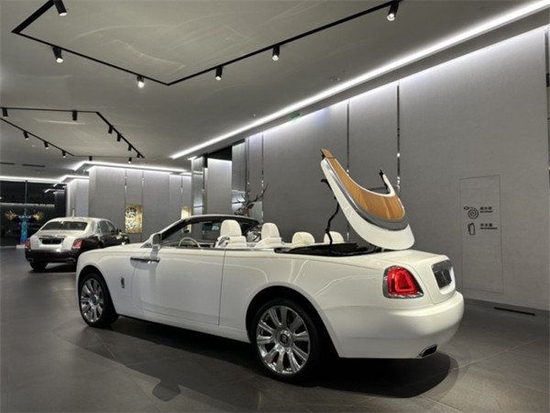劳斯莱斯曜影,跑车软顶的曜影可谓是劳斯莱斯家族中的闪耀公主,它的多色搭配私人订制,劳斯莱斯对皮质的选择极端苛刻,他们只用欧洲牛,而且最好是高海拔地区,牛很少生虫,不会被栅栏刮伤,从而保证真皮的品质,大概需要450块不同部位的牛皮,才能制作一台曜影。