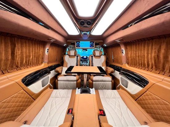 这款锦绣山河,是基于奔驰V260豪华定制的一款富豪出行的商务车系列,贵族经典的迈巴赫外观元素设计,内饰细节极尽豪华!