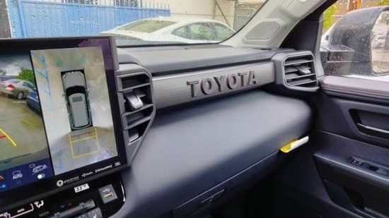23款丰田红杉车内采用了大量软质材料包裹,部分区域还加入了缝线处理,显得档次感和质感十足。另外车内采用的是四辐式多功能方向盘,并保留了很多物理按键,足以满足驾驶时想要的操控感,车内的科技氛围是通过12.3英寸的全液晶仪表盘和14英寸的中控屏来实现的,中控屏两侧的空调出风口,虽然没有采用时下流行的贯通式设计,但在中控台上对称排列也别有一番风味。
