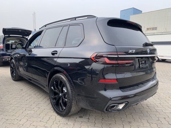 全新23款宝马X7依旧采用了大量宝马家族化设计元素,整体造型延续了此前概念车的设计。进气格栅相比宝马现款车型尺寸更大,两侧大灯也采用了开眼角设计,但造型更加狭长,搭配内部的日间行车灯,有着较强的科技感。 宝马X7侧面采用了与7系 (配置|询价)相同的“L型”镀铬装饰,一条贯穿车侧的腰线将尾灯也融入其中。