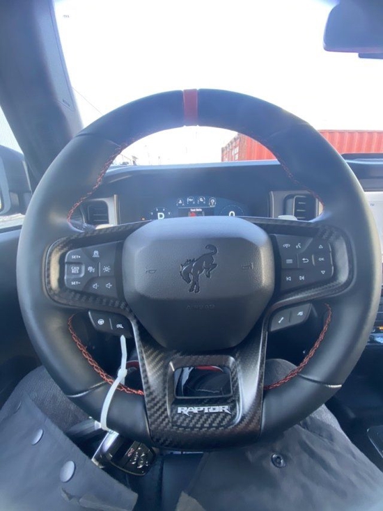 22款福Bronco烈马猛禽版采用特殊材质座椅,表面选用超耐磨且可清洗微绒面料,内部骨架采用特殊形体支撑,防止驾乘人员在越野中左右摇摆。安全带采用醒目的橙色配色,与内饰黑色主色调行程鲜明对比。
