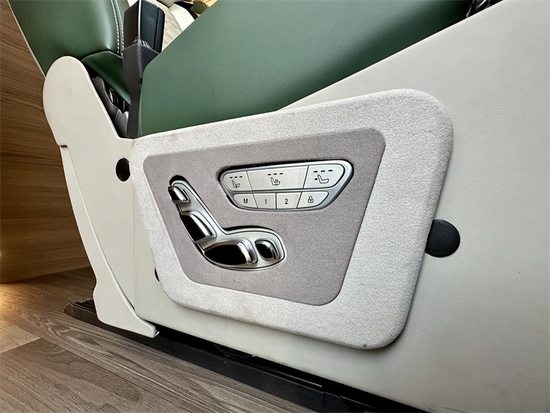此车核载4人,商务化客厅区域,主要应用于三两好友,或者一家日常短途的放松娱乐。会客区提供两张保姆车级别航空座椅和可拆卸餐桌,座椅支持电动调节、加热、通风、按摩并且提供腿部支撑,舒适性无需多言。配置上,餐桌上方设有多组220V/USB充电接口,基于大功率逆变输出,车内支持多电器同时用电。升降桌板可根据用车环境来决定如何使用。