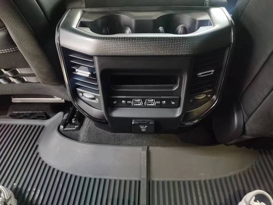 2022款道奇公羊霸王龙中控台的设计简洁硬派,符合公羊的气质。仪表盘底边有花纹,则更加凸显了这款车的文雅性。软性材质的仪表台设计,摸上去手感非常舒服,并无些许生硬之处。