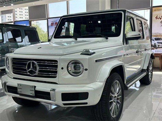 奔驰G400时光铭刻版外观方面它和奔驰G500的设计基本无异,亮黑色的方盒子造型粗犷硬派,因为这款车配有暗夜包,它前脸的三肋格栅、两侧的圆形大灯和前杠都进行了熏黑处理,格栅中间实心的三叉星车标搭载了主动安全的雷测,同时前脸还搭载了360环影的摄像头。光源方面,它采用的是几何多光束的LED大灯照明效果绝对出色。