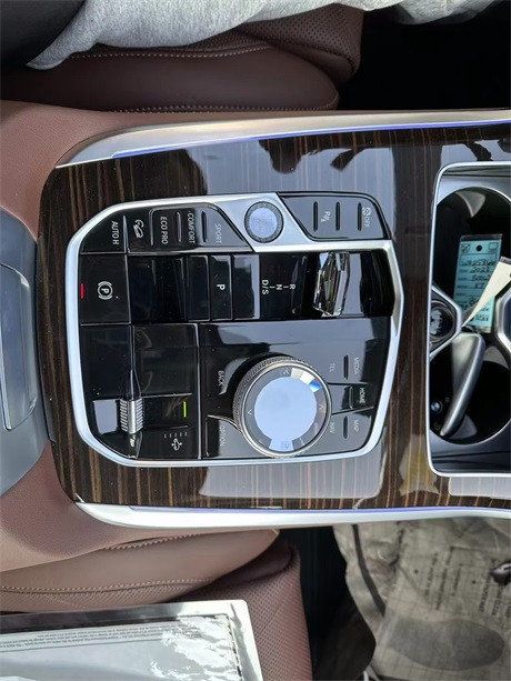 2023款宝马X7采用最新家族式设计语言,使用大量真皮、木纹饰板进行包裹。配备12.3英寸带有注意力检测的全液晶仪表和12.3英寸悬浮式触控显示屏。空调出风口与温度显示屏、实体功能按键结合在同一区域,并使用银色装饰条进行点缀。下方盖板下方为带有加热、制冷功能的杯架,全新的水晶电子挡杆造型十分精致,进一步提升了车内的豪华氛围。