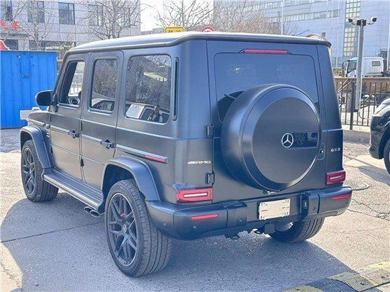 22款奔驰G63 (配置|询价)正面上直瀑式的进气格栅很有力量感,值得一提的是这部车的前包围进行了加强处理,让本就非常硬朗的外观又多了份霸气感!环装的炮眼式前大灯依旧是这部车最亮眼的地方,点亮的瞬间更是彻底被征服。中网的奔驰LOGO显得格外的光彩夺目。
