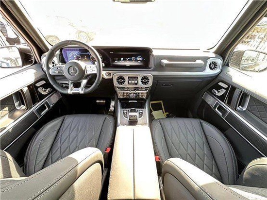 22款奔驰G (配置|询价)63中控屏依旧是采用了同一款液晶屏显示,第一感觉就是科技感爆表。而其他方面例如方向盘,空调出风口,挡杆等等的设计充满设计感。中控台多处均采用碳纤维材料覆盖,带彩色TFT显示屏的AMG仪表盘、AMG主菜单和单独的挡位显示器以及采用白色照明的AMG门槛。名贵的选材及精湛的内装令人拍案叫绝。