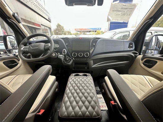 进口依维柯主要以黑色的外观为主,长度尺寸为5598,宽度尺寸2010,高度尺寸2281,一款人在车内,完全可以站直走动的大车。进口依维柯也是3.0T 8AT柴动力组合。轴距3520,油箱容积为100升。并且带有空气悬挂系统和L2自适应驾驶系统。133-7022-6676