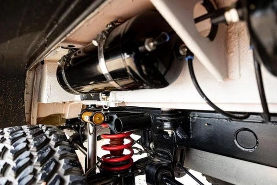 装备方面,悬挂与G63 4x4一样采用了门桥式悬架,提升通过性,离地间隙达到460mm,涉水深度达到1000mm。6个车轮采用了37英寸AT越野轮胎,还配备了自动充放气系统,自带压缩机和20升储气罐,方便你在沙漠不用下车也能随时调整胎压。