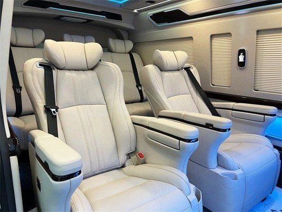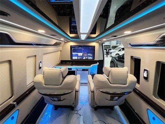 丰田海狮整车升级了加强型的隔音隔热处理,车内带空气净化系统,无线充电系统。在进门侧加装了氧化铝脚踏带迎宾灯的,整车都是采用纳帕级皮质进行包覆的,侧壁桃木装饰,手动百褶窗帘,后舱暖风系统,最后说说棚顶灯光,这个有智能触摸控制系统。灯光超级棒。