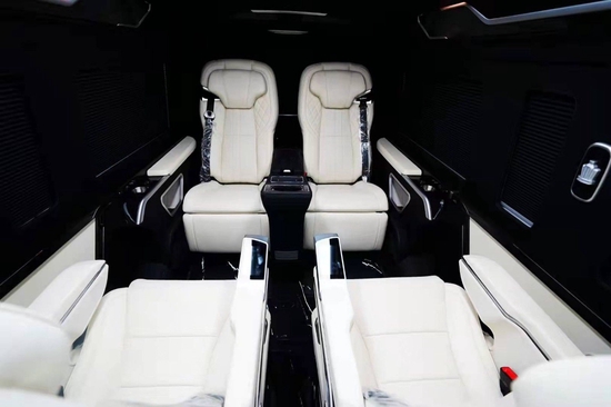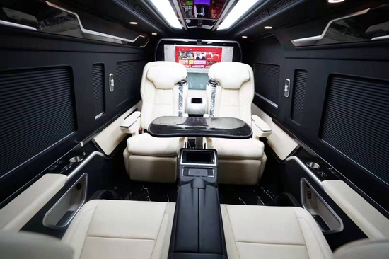 丰田海狮整车(华通丰业)升级了加强型的隔音隔热处理,车内带空气净化系统,无线充电系统。在进门侧加装了氧化铝脚踏带迎宾灯的,(华通丰业)整车都是采用纳帕级皮质进行包覆的,侧壁桃木装饰,手动百褶窗帘,后舱暖风系统,最后说说棚顶灯光,这个有智能触摸控制系统。灯光超级棒。