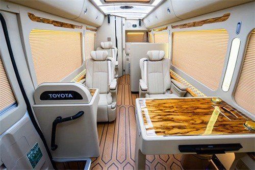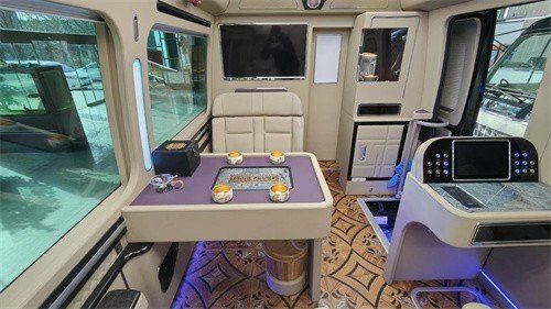 考斯特外观经典,大气。丰田考斯特改装商务车车身长度为7.005米,身宽度为2.040米,车身高度为2.774米。华通丰业丰田考斯特新增了隔热隐私玻璃,各种镀铬装饰以及镀金标识,庄重感与豪华感油然而生。采用简约设计风格的电视屏风将驾驶席与乘客区隔屏。配以乘客区公务机舱设计,使您在打开车门一瞬间即享尊荣之感。