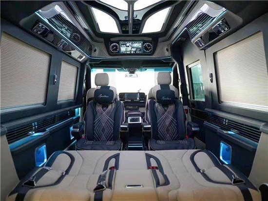 单从外观来看梅赛德斯奔驰Sprinter的车身外部线条整体流转,采用了奔驰斯宾特3500底盘,搭载了3.0L涡轮增压柴油发动机,杰出的燃油经济性更多车型配置详情请致电:汪经理175 2669 2158(同微信)同时还有相当好的动力性。车身外部也下足了功夫:风力感应主动弹性的遮阳棚、铝合金钢圈、车顶100w太阳能电池板、电动乘客门及后尾门防蚊蝇纱门驾驶舱座椅采用真皮包裹,座椅各部位符合人体工程学设计,对司机长途驾驶降低疲劳度十分有帮助。驾驶舱有大量的烤漆做装饰,中控屏幕为先锋品牌,集成有车载导航、倒车影像、影音播放等功能,下方为空调以及车门开关。