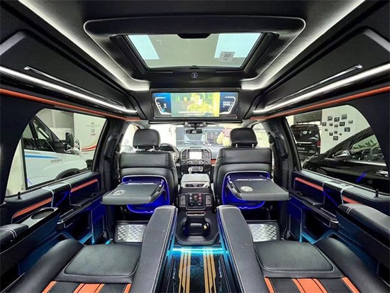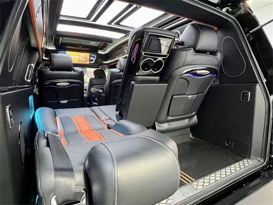 两个独立的航空头等舱按摩座椅,配有通风、加热、按摩等十二项电动调节功能,让我们在乘坐过程中有舒适的乘坐体验。搭配顶部24寸高清互联网电视与索尼音响系统,让你在车内也能享受影院级别的视听感受。