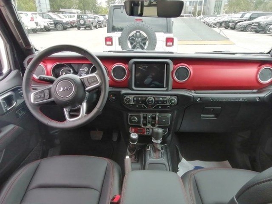 标配:四驱,2.0T,8速自动,一键启动,红色拖钩(前2+后1),十字节半轴,电动加热外后视镜,全尺寸备胎,17寸轮,轮胎285/70/17,高位轮眉,原车1.5寸升高,黑色硬顶,主驾驶手动8向调节,带锁杂物箱,多功能方向盘,松下8.4寸大屏,导航音响包,UCONNECT 第四代车机系统,越野APP,苹果和安卓手机连接,无钥匙进入,杯垫照明,8扬声器,4个USB接口,前后脚垫,倒车影像,电动车窗,电动门锁,安全警报,自动大灯,后排座椅60/40可折叠,自动空调,4.1后桥比,Rock-Trac双速机械分动箱,Red trail徽章,Rubicon贴。