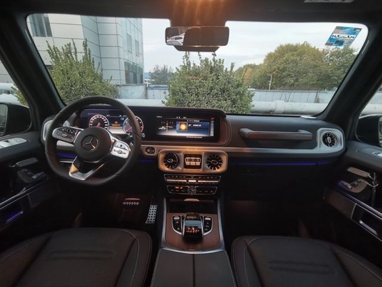 配置:天窗,红色安全带,前排真皮座椅通风加热,后座椅加热,全液晶仪表,氛围灯,自动空调,柏林之声音响,三把差速锁,前后电眼,雷达测距,并道辅助,脚踏,后视镜电动折叠,多功能方向盘,20寸AMG轮毂。环影