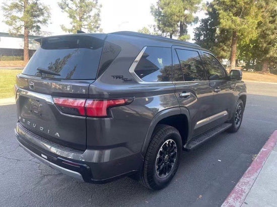 全新一代23款丰田红杉拥有一个非常庞大的身躯,采用了隐藏式的A、B、C柱设计,营造出悬浮式车顶的样式,外后视镜壳还有银色与黑色可选,提升了该车的时尚感。另外,新车腰线贯穿整个侧面,并在前后翼子板处采用内凹式设计,营造出了极其宽厚的视觉效果,再搭配六螺栓孔固定的20英寸密条辐轮圈,整体搭配展现出了陆上霸主的气息。温馨提示:请勿相信过低价格 价格靠谱更重要。文章中仅仅只是车型简单介绍,咨询购车或了解更多详情和最新价格优惠请通过电话方式(文章末端)详细咨询 (魏经理)第一时间为您解答。