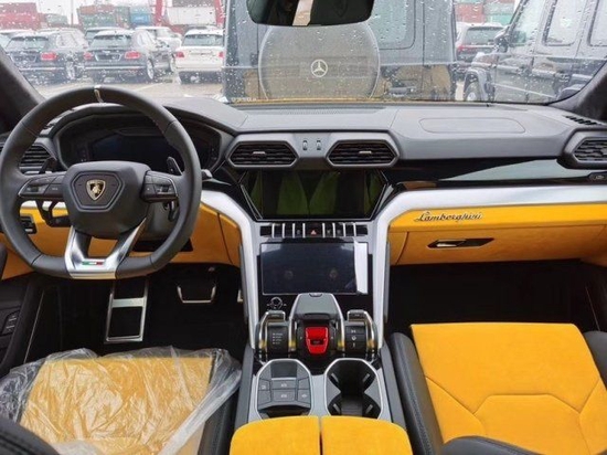 22款兰博基尼Urus配置:方向盘棕色缝线,全电动前座椅带通风按摩功能,亮黑色时尚套装,黑色亚光排气管,全景天窗,BO音响,抬头显示,多功能方向盘透气打孔,真皮座椅菱形格缝线,四座配置,头枕刺绣,高光亮黑细节,高级空气质量系统,越野模式,21寸备胎,高速辅助,橙色卡钳,23寸亮黑色轮毂,交车套装(养电器,四季行李箱垫,四季脚垫)