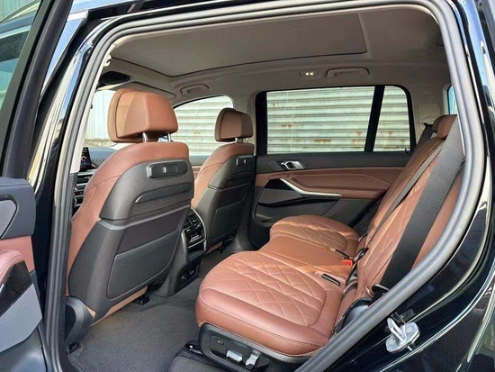23款宝马X7的第二排为两个独立座椅且带有电动调节功能(7座车型第二排还支持前后14.5cm的滑动调节),上方配备两个头枕,内侧配有座椅扶手,大幅提升了乘坐舒适性。第三排为两个常规座椅,支持一键便捷进入,提供照明灯、杯架等常用配置。后备箱方面,宝马X7配置同样齐全,除包括基础的照明灯、电源、锚点以及挂钩外,还配有后两排座椅的一键放倒、打开功能,大幅提升了使用便捷性。