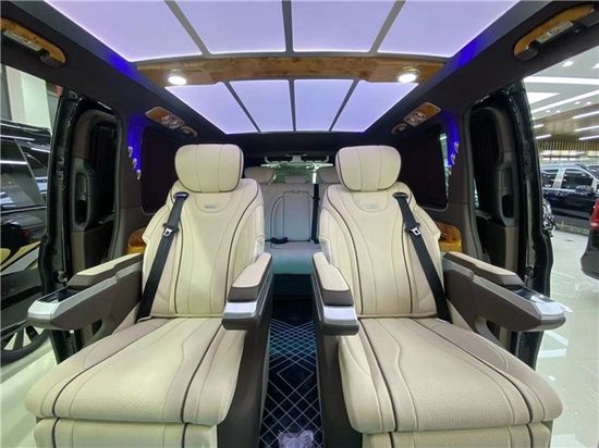 2022款奔驰威霆商务车内饰通过改装实现了满足商务接待、洽谈、出游等各种出行需求,全车真皮包覆质感十足,它的第二排的座椅也达到了飞机头等舱的标准,手感细腻的进口纯手工真皮包裹,配有精致缜密的缝线,小范儿细节之处随处可见,不仅看上去更有档次感,而且在您坐上去之后就能感觉到它完美的衬托感,还具有多向电动调节等功能,它不仅可以让乘客更好的休息,也还可以和后排的人一起下棋或者打麻将,因为这个座椅可以旋转到后方,这样就可以轻松的娱乐了,座椅具备了通风和加热、按摩、记忆功能,整车配置强大,说不出一个不好的理由。