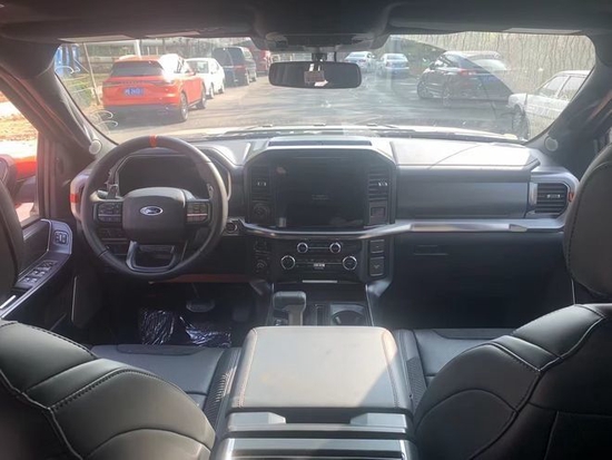 22款福特猛禽F150内饰采用独特的中控台和门饰板面漆和真皮包裹的方向盘。中控台部分辅以银色饰板装饰,六指针仪表盘的设计有些后工业时代的复古风格。采用带电冷热功能的可记忆式皮革座椅,头枕四向可调,搭配铝饰条和黑色钢琴烤漆内饰可电动升降的后窗带隔板和电热除霜功能。